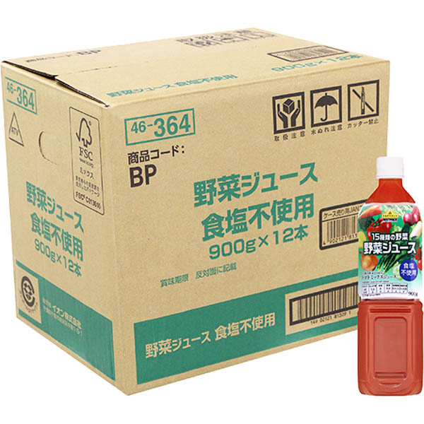 【ケース販売】トップバリュベストプライス 野菜ジュース 食塩不使用 900g×12