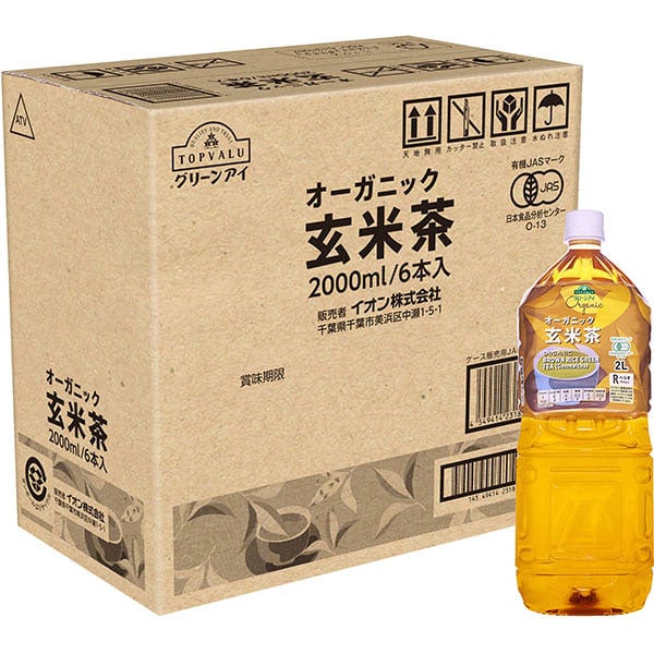 【ケース販売】トップバリュ グリーンアイ オーガニック 玄米茶 2000ml×6