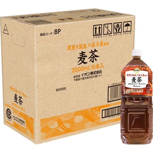 【ケース販売】トップバリュベストプライス 深煎り国産六条大麦使用 麦茶 2000ml×6本