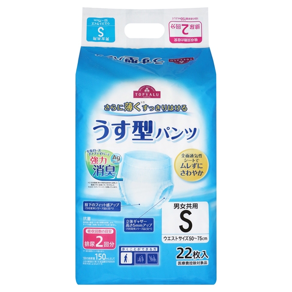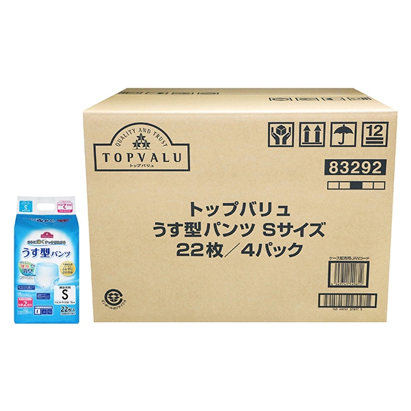 【ケース販売】トップバリュ うす型パンツ Sサイズ 22枚×4個
