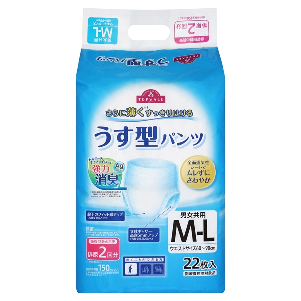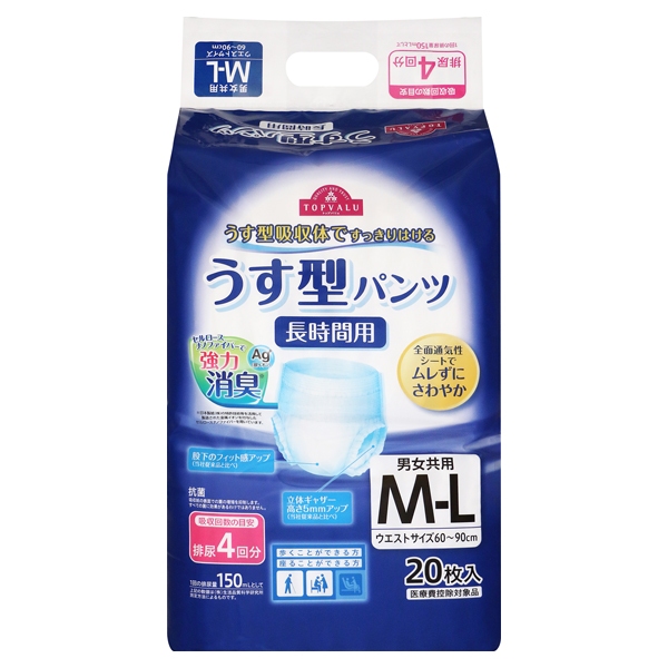 トップバリュ うす型パンツ長時間用 M~Lサイズ 20枚