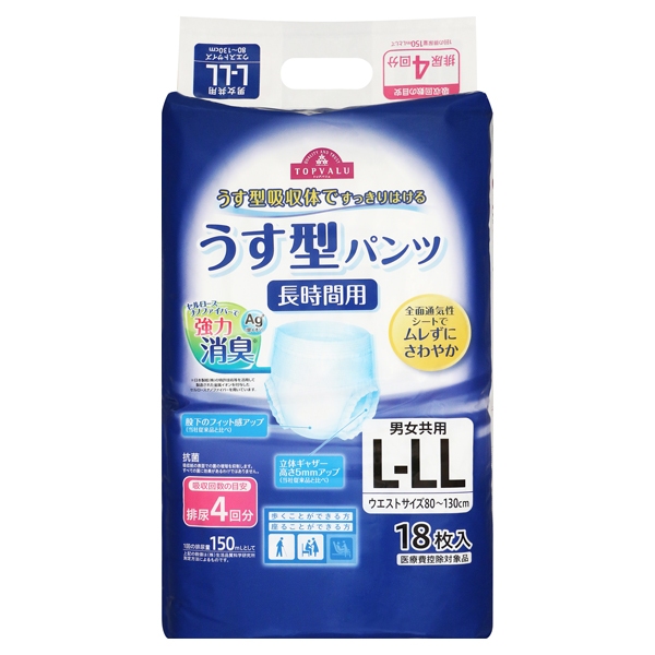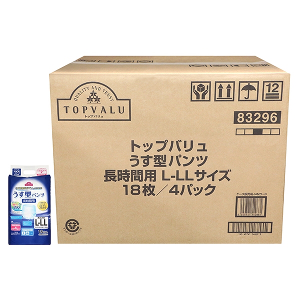 【ケース販売】トップバリュ うす型パンツ 長時間用 L~LL 18枚×4個