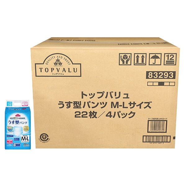 【ケース販売】トップバリュ うす型パンツ M~L 22枚×4個