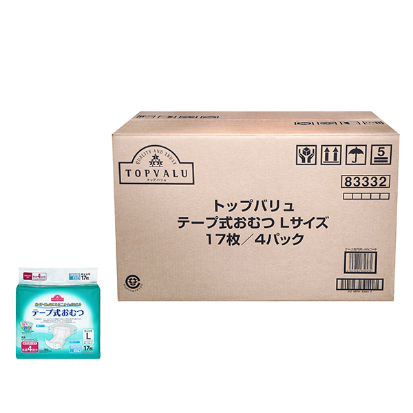 【ケース販売】【テープ】トップバリュ テープ式おむつ L 17枚×4パック