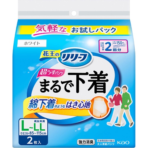 花王 リリーフ パンツタイプ まるで下着 2回分 L~LL ホワイト 2枚