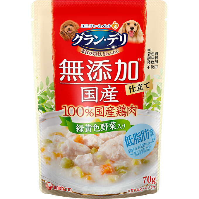 【ペット用】ユニ・チャーム グラン・デリ 100%国産鶏肉パウチ 無添加仕立て 国産鶏ささみ 緑黄色野菜入 70g