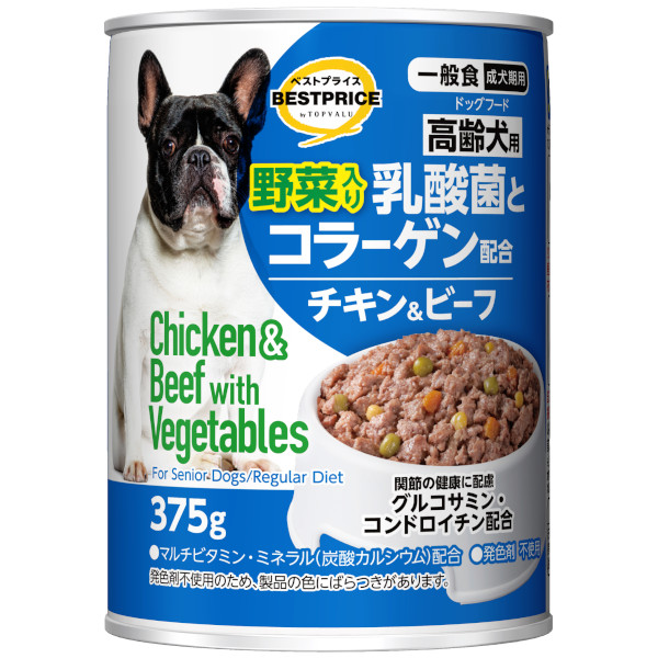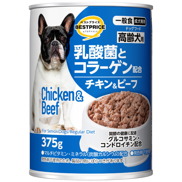 【ペット用】トップバリュベストプライス 乳酸菌とコラーゲン配合 ドッグフード チキン&ビーフ 野菜入 高齢犬用 375g