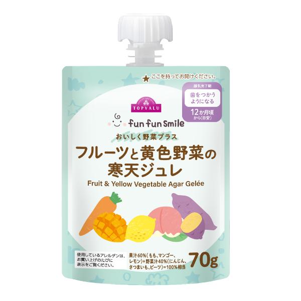 【12ヶ月頃~】トップバリュ fun fun smile フルーツと黄色野菜の寒天ジュレ 70g