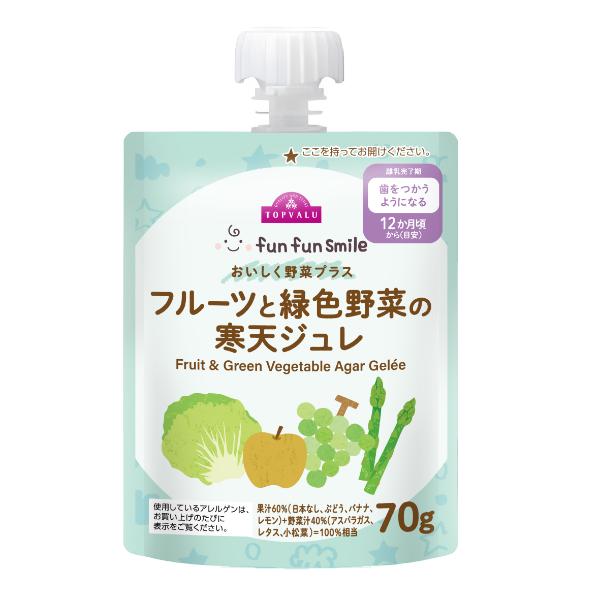 【12ヶ月頃~】トップバリュ fun fun smile フルーツと緑色野菜の寒天ジュレ 70g