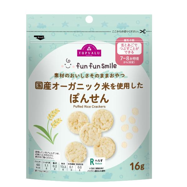 【7~8ヶ月頃から】トップバリュ fun fun smile 国産オーガニック米を使用した ぽんせん 16g