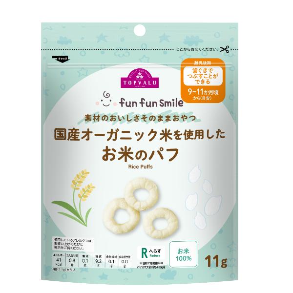 【9~11ヶ月頃から】トップバリュ fun fun smile 国産オーガニック米を使用した お米のパフ 11g