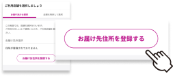 「お届け先住所を登録する」ボタンを押して、配送先の住所を登録します