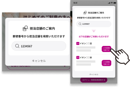 なお、お届け先住所の担当店舗は、下記の「担当店舗のご案内」より、郵便番号で検索することができます
